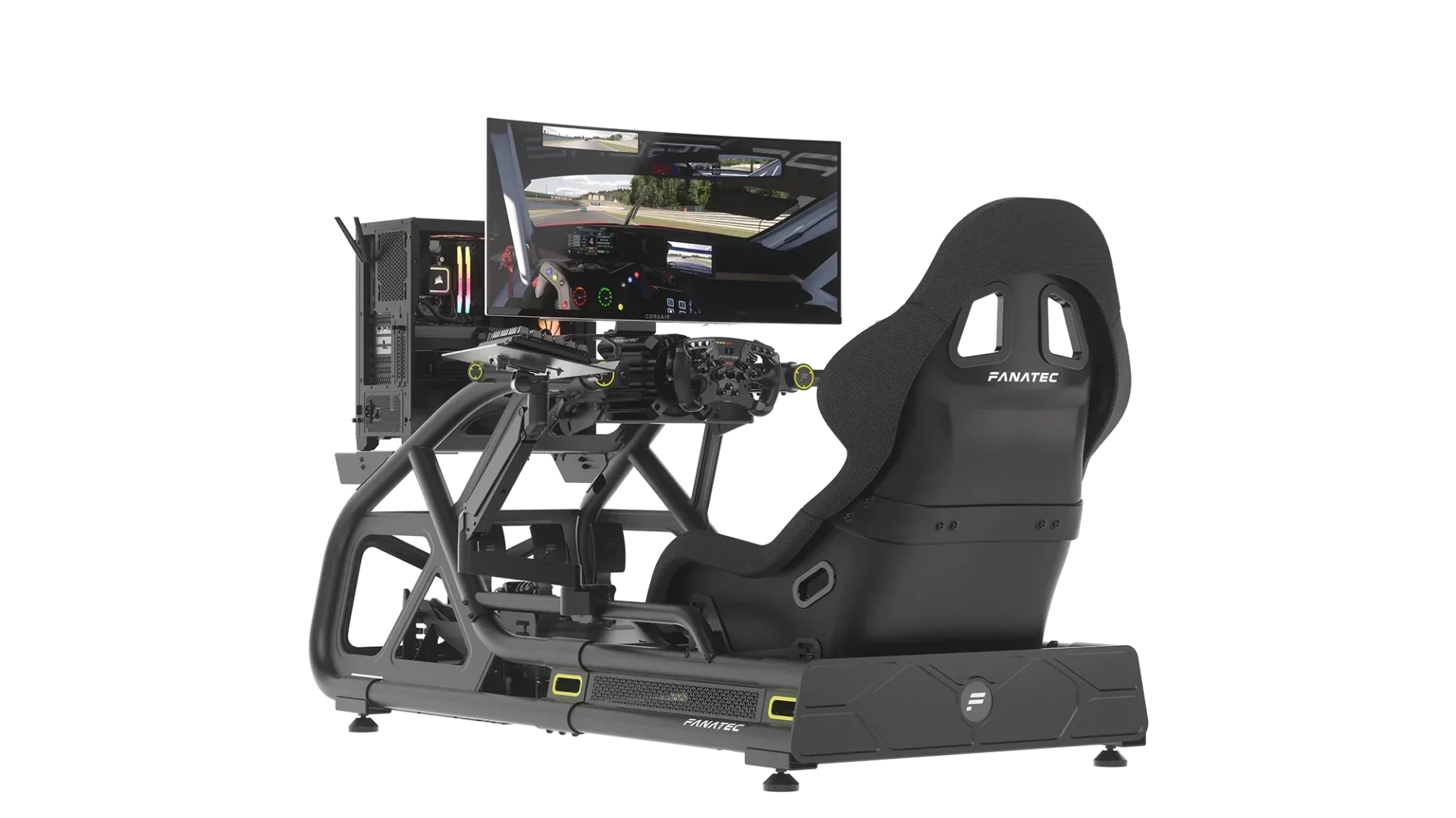 Fanatec has gone all in on functionality here. Integrated cable management channels are built into the tubular frame, keeping wires neatly tucked away. The cockpit also includes a built-in monitor stand, and Fanatec sells optional accessories that expand its versatility.