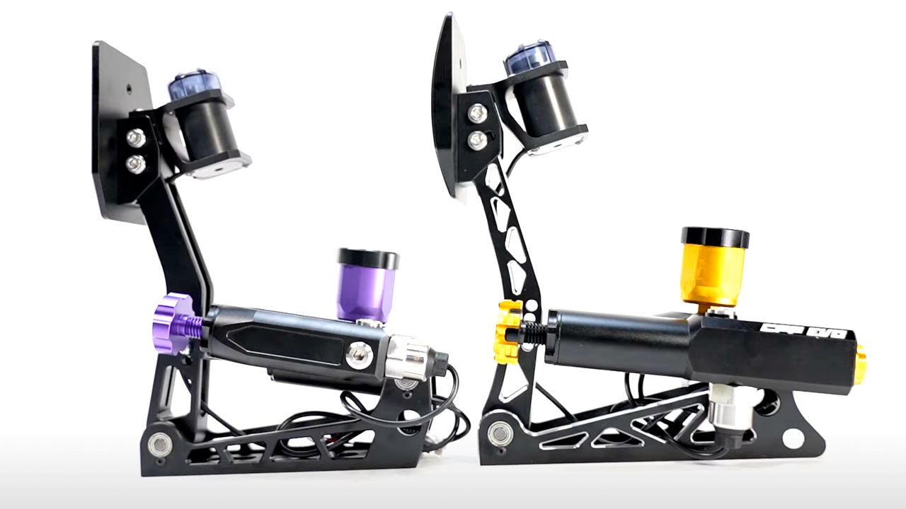 What are the standout features of these pedals? The standout features include hydraulic braking systems, high-quality construction, integrated rumble motors for enhanced immersion, and options for spring preload and bite point adjustments. Both models provide smooth, responsive, and realistic feedback.